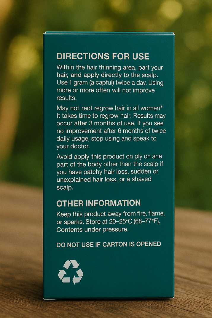 EASY TO USE: Simply pump out the foam and apply it to dry scalp then wash your hands after use. For best results use twice daily to easily achieve fuller healthier hair with minoxidil for women hair growth WHY 3% MINOXIDIL INSTEAD OF 5%: Because 3% Minoxidil is more suitable for women compared to the 5% concentration as it is less likely to cause unwanted hair growth in areas other than the scalp.]